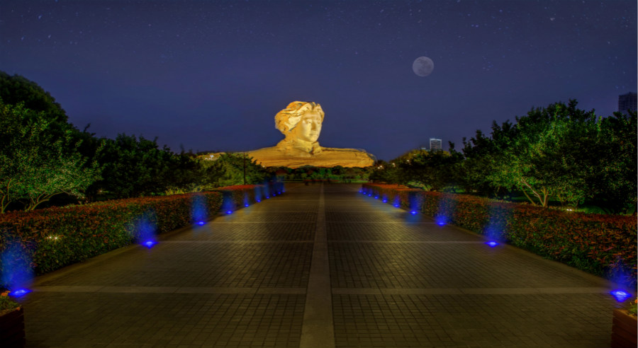 城市景觀太陽能自發光路邊案例,在橘子洲環島及毛主席頭像附近均有鋪設,為市民散步休閑提供保障及視覺美感。